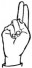 На ћирилици написано МАРИЈА ЛАЛОВИЋ састоји се из 13 слова [?]. Исписано ћириличном једноручном азбуком за глувонеме: